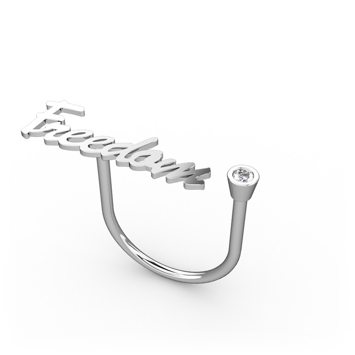 Beyaz zirkon 18 ayar beyaz altın yüzük (7 karakterli el yazısı)