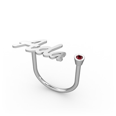 Garnet 18 ayar beyaz altın yüzük (3 karakterli el yazısı)