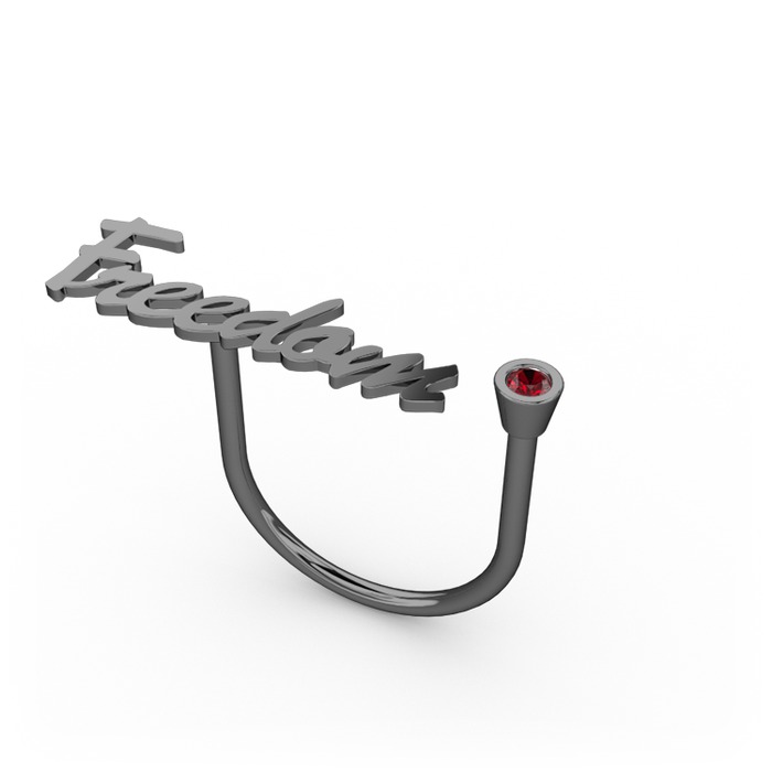 Garnet 925 ayar siyah rodyum kaplama gümüş yüzük (7 karakterli el yazısı)