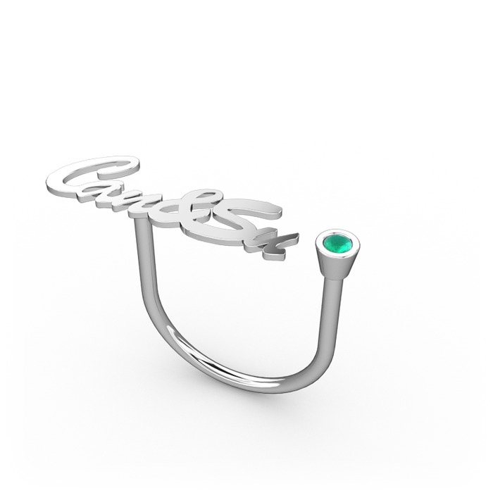 Kök zümrüt 8 ayar beyaz altın yüzük (6 karakterli el yazısı)