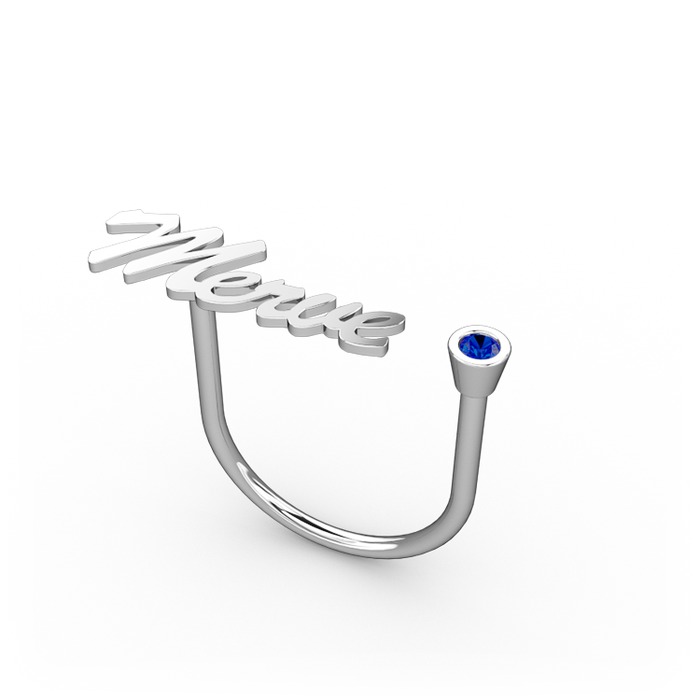 Lab safir 14 ayar beyaz altın yüzük (5 karakterli el yazısı)