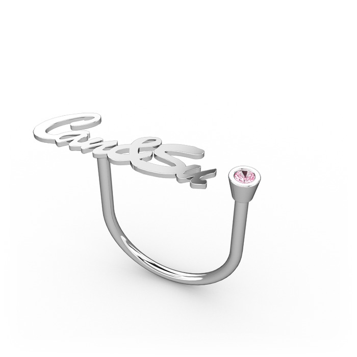 Pembe kuvars 8 ayar beyaz altın yüzük (6 karakterli el yazısı)