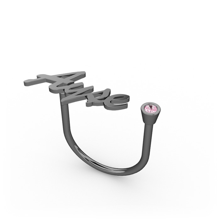 Pembe kuvars 925 ayar siyah rodyum kaplama gümüş yüzük (4 karakterli el yazısı)