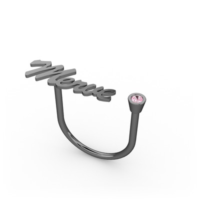 Pembe kuvars 925 ayar siyah rodyum kaplama gümüş yüzük (5 karakterli el yazısı)