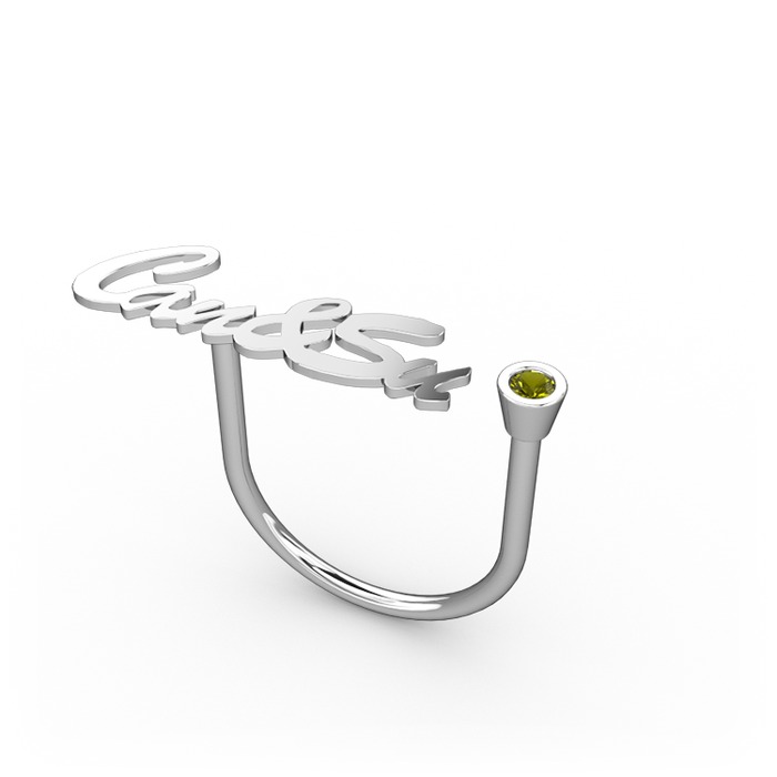 Peridot 8 ayar beyaz altın yüzük (6 karakterli el yazısı)