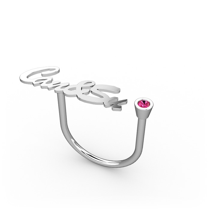 Rodolit garnet 18 ayar beyaz altın yüzük (6 karakterli el yazısı)