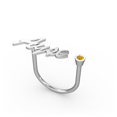 Sitrin 8 ayar beyaz altın yüzük (4 karakterli el yazısı)