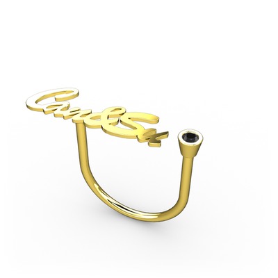 Siyah zirkon 14 ayar altın yüzük (6 karakterli el yazısı)