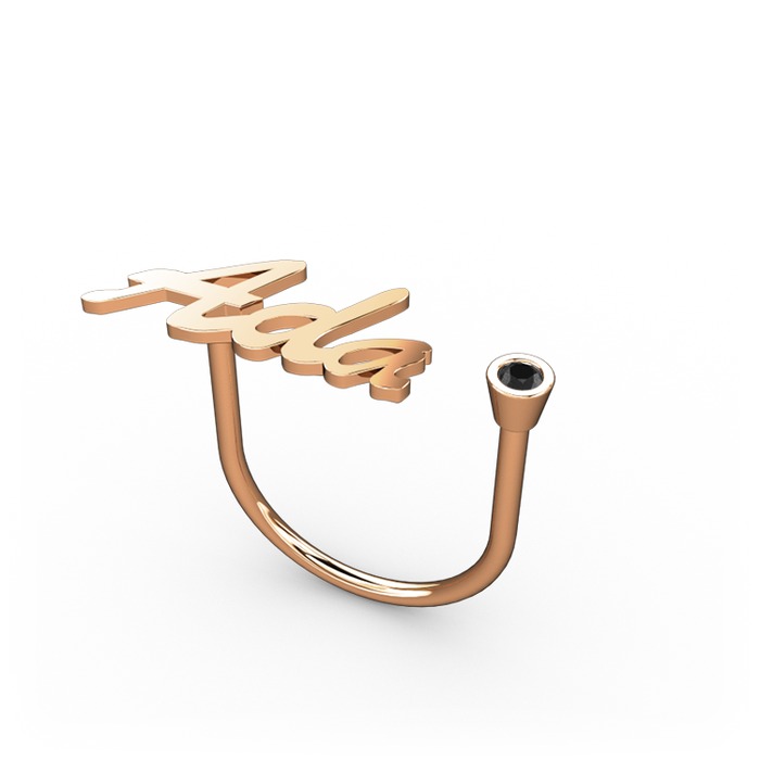 Siyah zirkon 14 ayar rose altın yüzük (3 karakterli el yazısı)