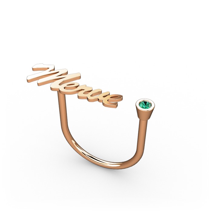 Yeşil kuvars 14 ayar rose altın yüzük (5 karakterli el yazısı)