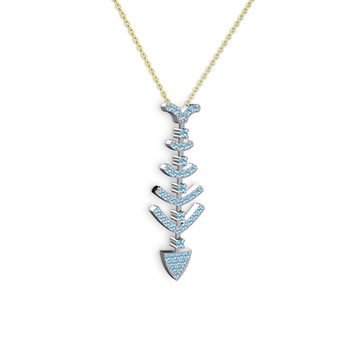 Akuamarin 14 ayar beyaz altın kolye (40 cm altın rolo zincir)