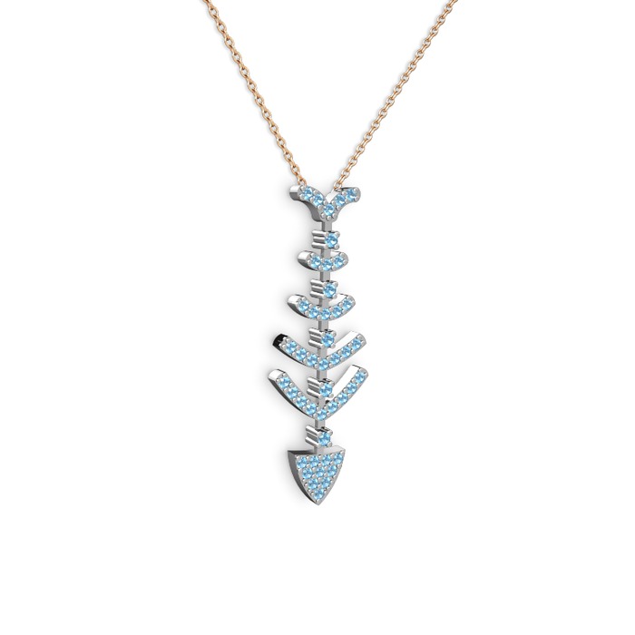 Akuamarin 14 ayar beyaz altın kolye (40 cm rose altın rolo zincir)