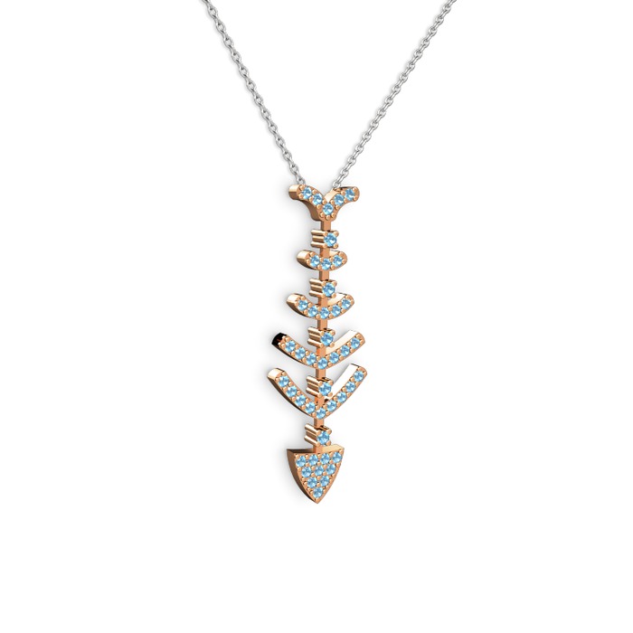 Akuamarin 18 ayar rose altın kolye (40 cm beyaz altın rolo zincir)