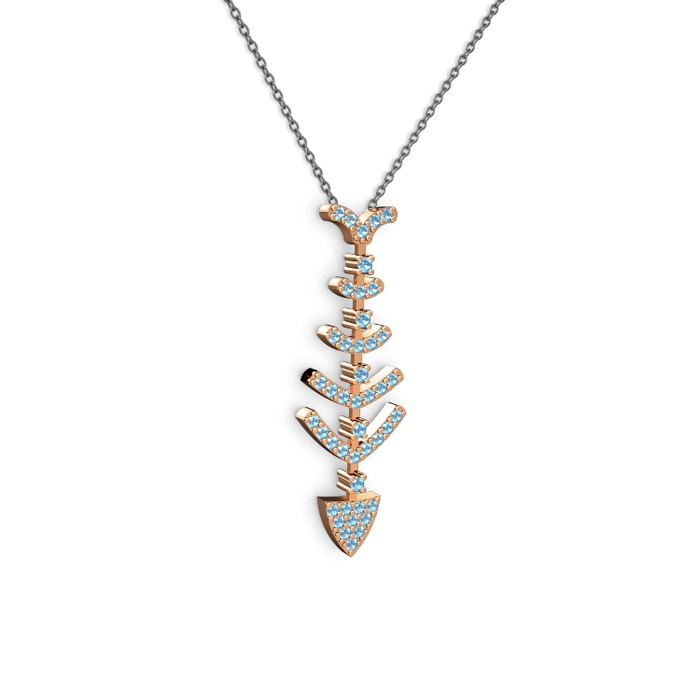 Akuamarin 8 ayar rose altın kolye (40 cm gümüş rolo zincir)