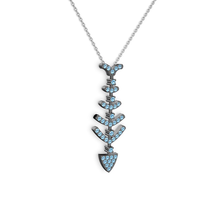 Akuamarin 925 ayar siyah rodyum kaplama gümüş kolye (40 cm beyaz altın rolo zincir)
