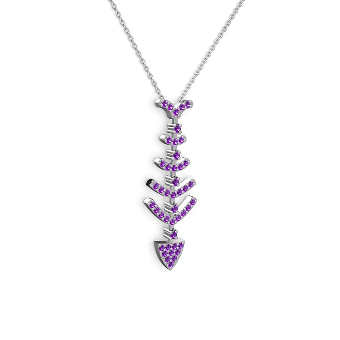 Ametist 14 ayar beyaz altın kolye (40 cm gümüş rolo zincir)