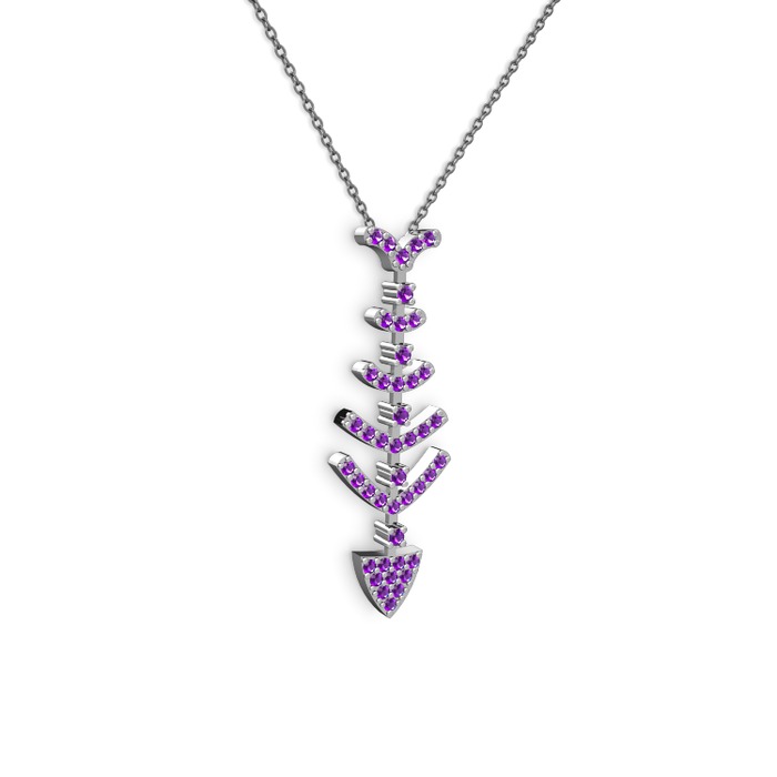 Ametist 8 ayar beyaz altın kolye (40 cm gümüş rolo zincir)