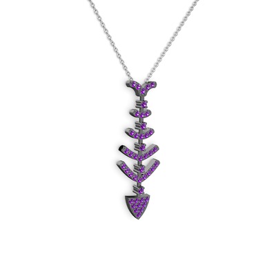 Ametist 925 ayar siyah rodyum kaplama gümüş kolye (40 cm beyaz altın rolo zincir)