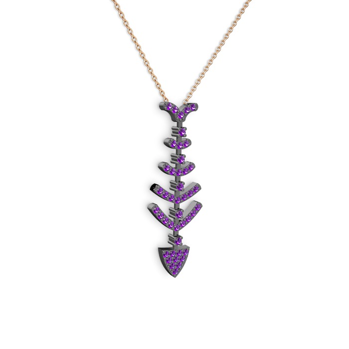 Ametist 925 ayar siyah rodyum kaplama gümüş kolye (40 cm rose altın rolo zincir)