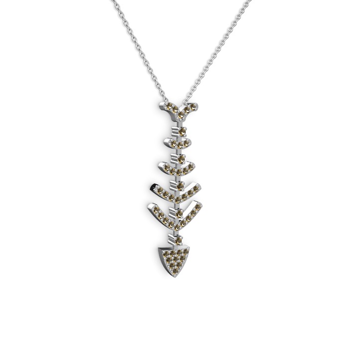 Dumanlı kuvars 18 ayar beyaz altın kolye (40 cm beyaz altın rolo zincir)