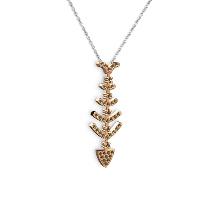 Dumanlı kuvars 18 ayar rose altın kolye (40 cm beyaz altın rolo zincir)