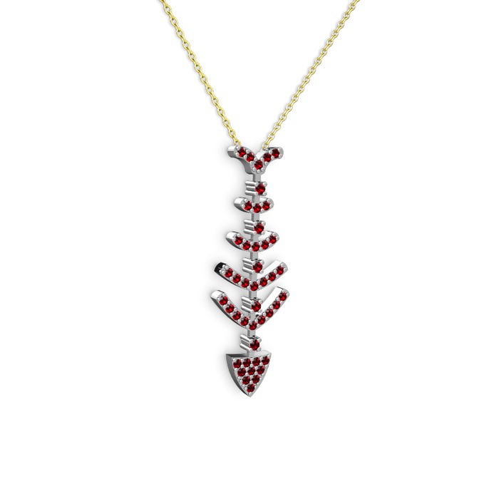 Garnet 14 ayar beyaz altın kolye (40 cm altın rolo zincir)