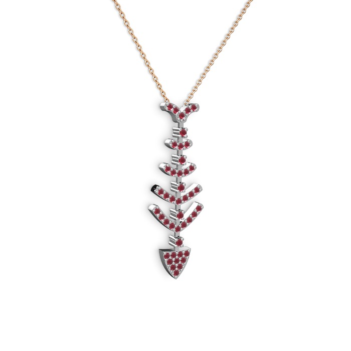 Kök yakut 14 ayar beyaz altın kolye (40 cm rose altın rolo zincir)