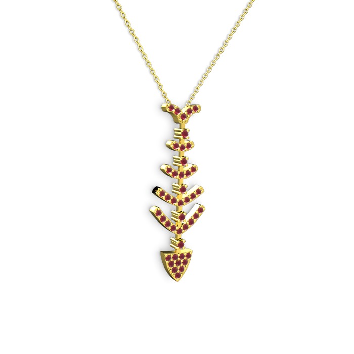 Kök yakut 925 ayar altın kaplama gümüş kolye (40 cm altın rolo zincir)