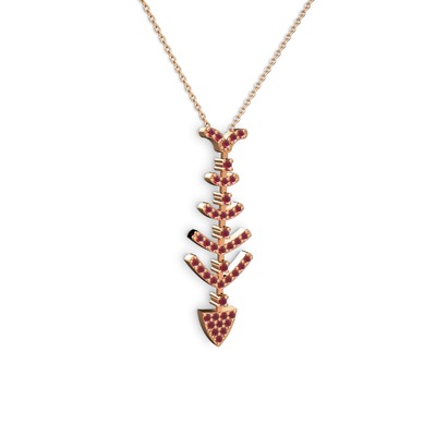 Kök yakut 925 ayar rose altın kaplama gümüş kolye (40 cm gümüş rolo zincir)