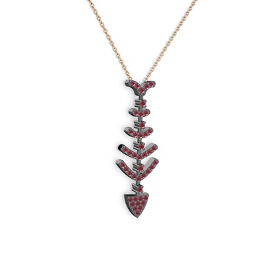 Kök yakut 925 ayar siyah rodyum kaplama gümüş kolye (40 cm rose altın rolo zincir)