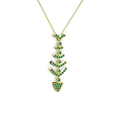 Kök zümrüt 14 ayar altın kolye (40 cm gümüş rolo zincir)