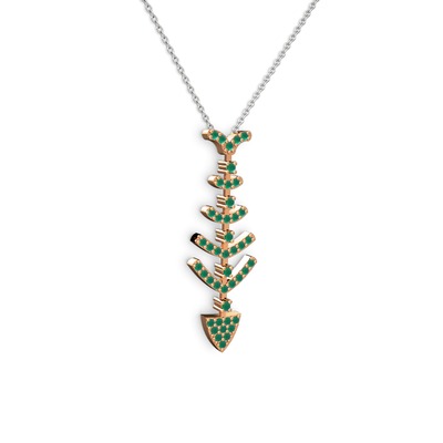 Kök zümrüt 14 ayar rose altın kolye (40 cm gümüş rolo zincir)