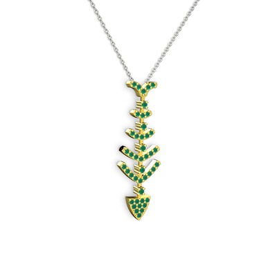 Kök zümrüt 18 ayar altın kolye (40 cm gümüş rolo zincir)
