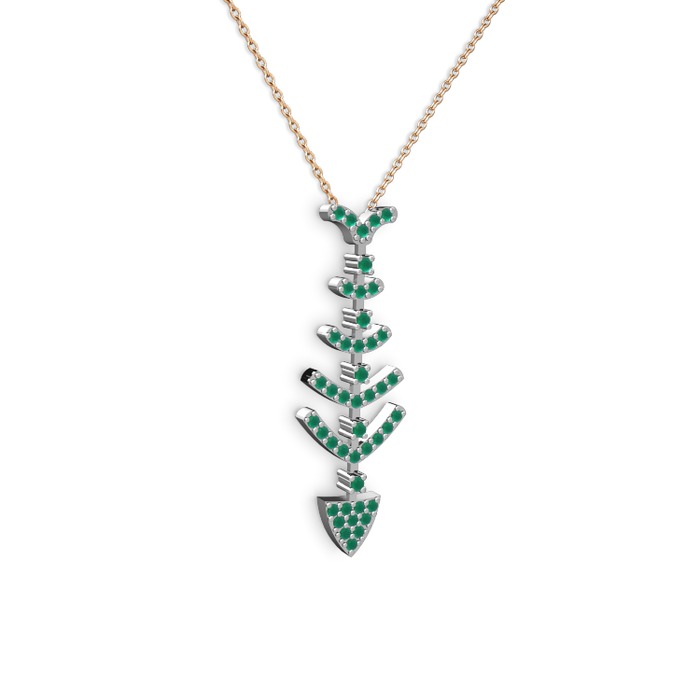 Kök zümrüt 18 ayar beyaz altın kolye (40 cm rose altın rolo zincir)
