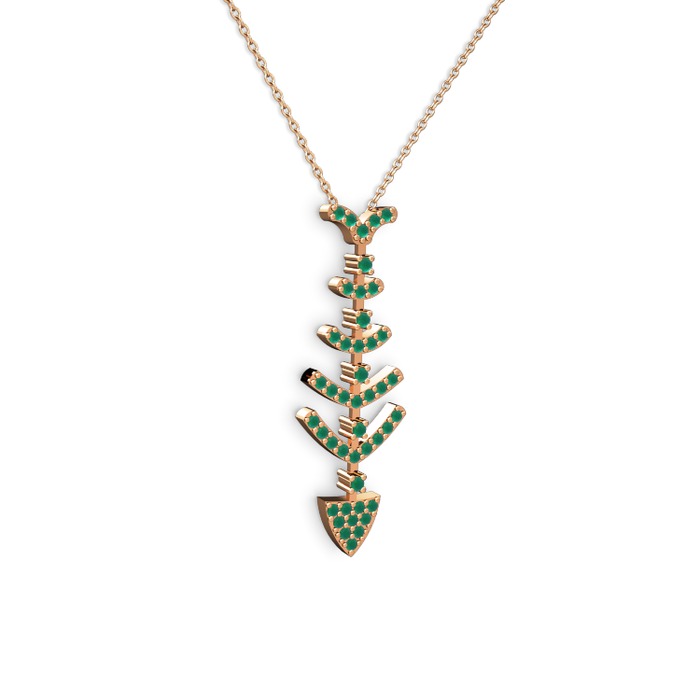 Kök zümrüt 18 ayar rose altın kolye (40 cm rose altın rolo zincir)