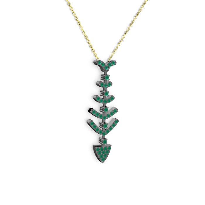 Kök zümrüt 925 ayar siyah rodyum kaplama gümüş kolye (40 cm altın rolo zincir)