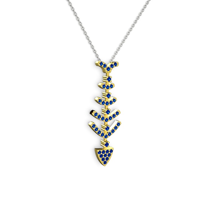 Lab safir 14 ayar altın kolye (40 cm beyaz altın rolo zincir)