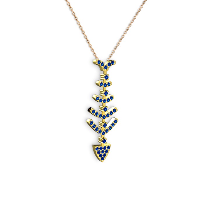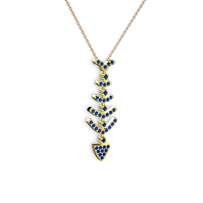 Lab safir 14 ayar altın kolye (40 cm rose altın rolo zincir)