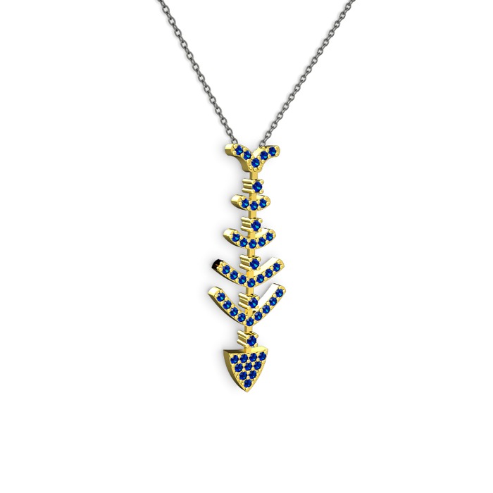 Lab safir 8 ayar altın kolye (40 cm gümüş rolo zincir)
