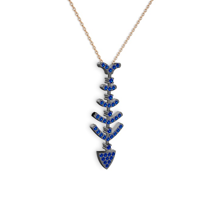 Lab safir 925 ayar siyah rodyum kaplama gümüş kolye (40 cm rose altın rolo zincir)