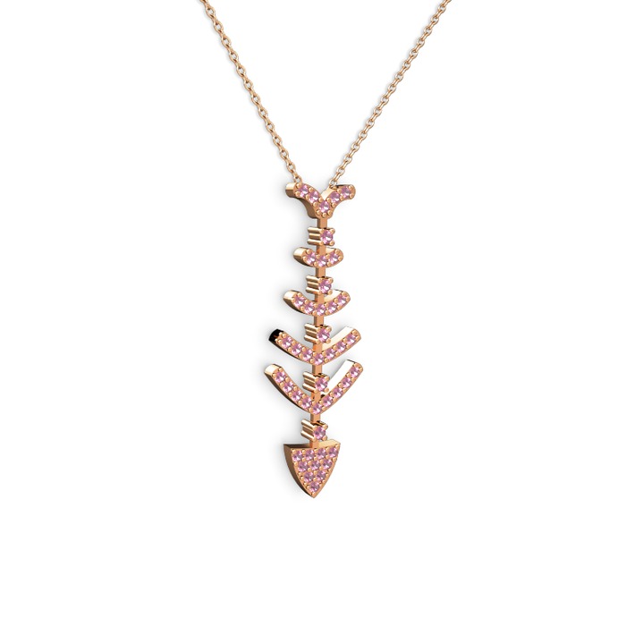 Pembe kuvars 14 ayar rose altın kolye (40 cm gümüş rolo zincir)