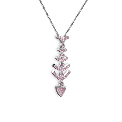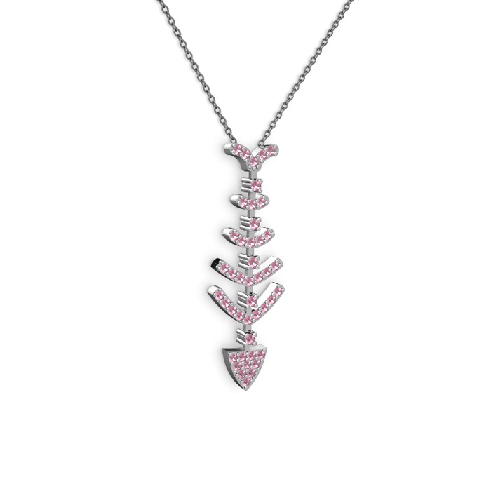 Pembe kuvars 18 ayar beyaz altın kolye (40 cm gümüş rolo zincir)