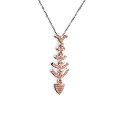 Pembe kuvars 18 ayar rose altın kolye (40 cm gümüş rolo zincir)