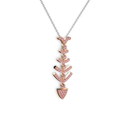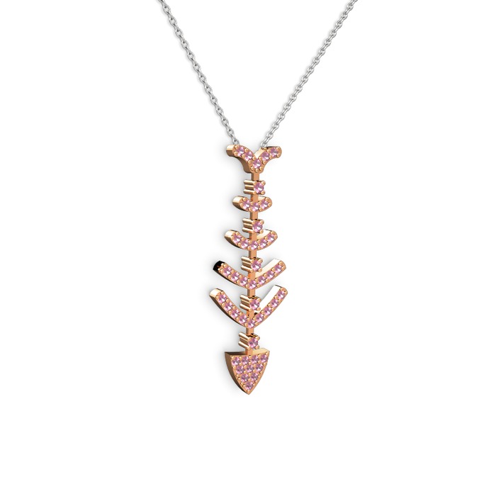Pembe kuvars 8 ayar rose altın kolye (40 cm beyaz altın rolo zincir)
