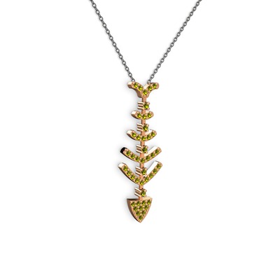Peridot 14 ayar rose altın kolye (40 cm gümüş rolo zincir)