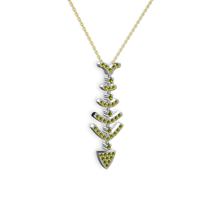 Peridot 8 ayar beyaz altın kolye (40 cm altın rolo zincir)