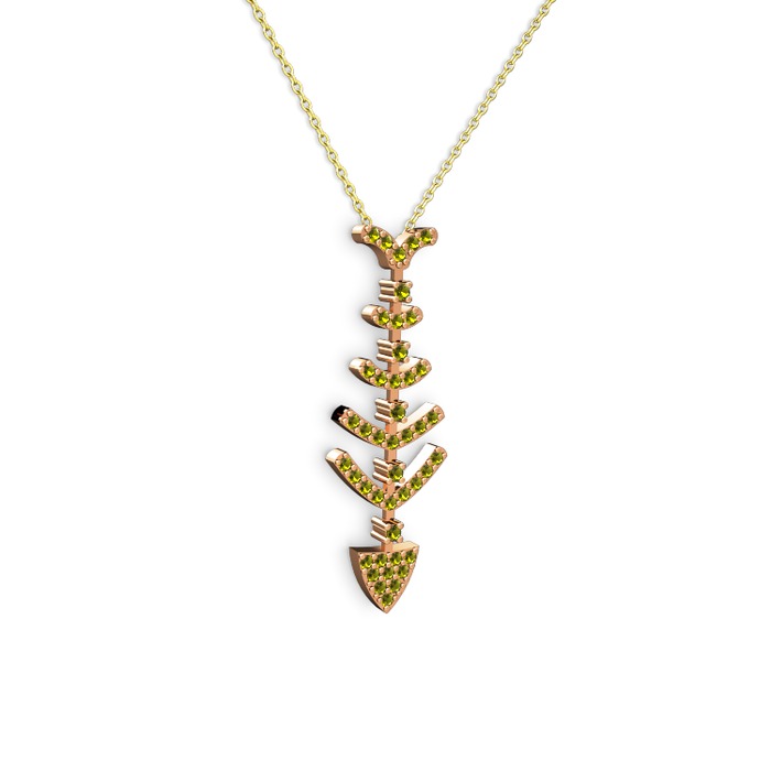 Peridot 8 ayar rose altın kolye (40 cm altın rolo zincir)