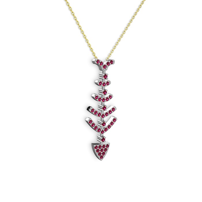 Rodolit garnet 14 ayar beyaz altın kolye (40 cm gümüş rolo zincir)
