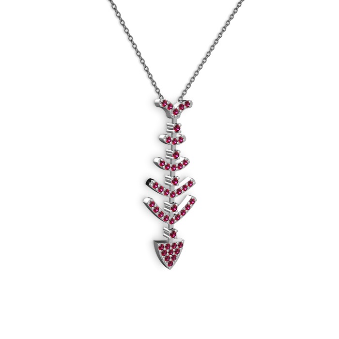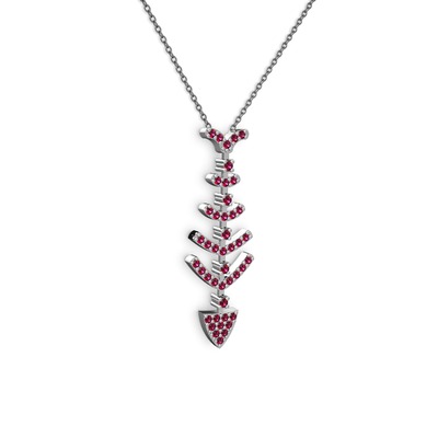 Rodolit garnet 18 ayar beyaz altın kolye (40 cm gümüş rolo zincir)