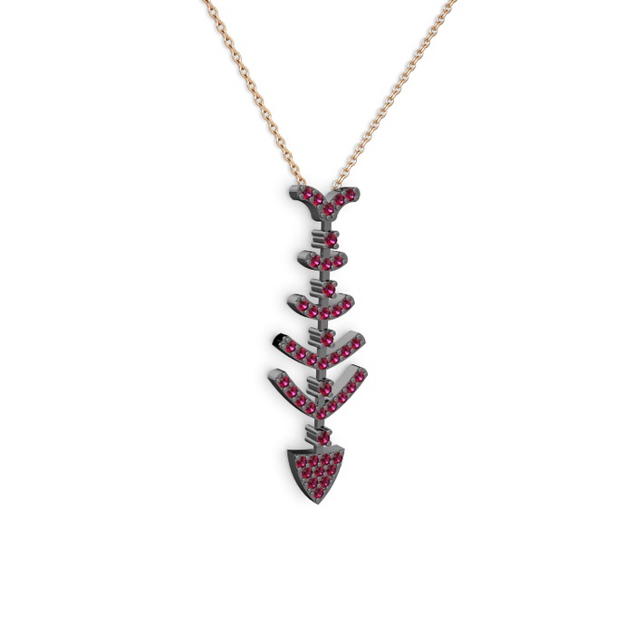Rodolit garnet 925 ayar siyah rodyum kaplama gümüş kolye (40 cm rose altın rolo zincir)
